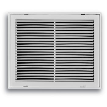 Return air vent filter grille, white with fixed blades.